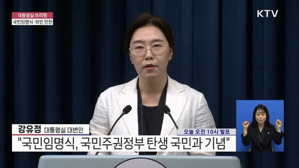 대통령실 브리핑 - 국민임명식·외빈 만찬강유정 / 대통령실 대변인 (오늘 오전 10시 발표)(장소: 대통령실 브리핑룸)