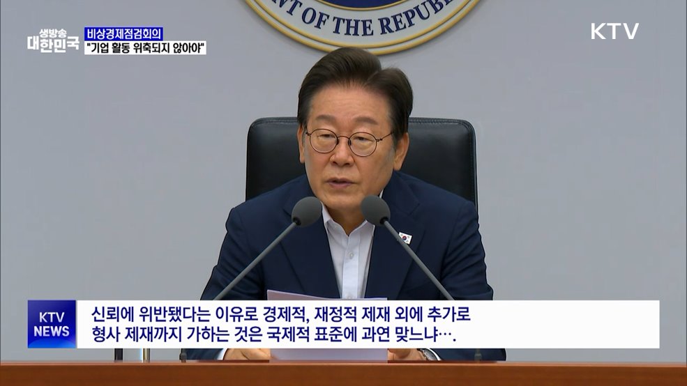 김현지 앵커>이재명 대통령이 성장 동력을 위해 기업의 경영 활동 최대한 지원하겠단 뜻을 밝혔습니다.특히 과도한 경제 형벌로 기업 활동이 위축되지 않아야 한다며, 정부 내에 경제형벌 합리화TF를 가동하겠다고 발표했습니다.최영은 기자의 보도입니다.최영은 기자>세 번째 비상경제점검 TF회의를 주재한 이재명 대통령.성장과 기회의 동력을 만들기 위해 기업 활동을 최...