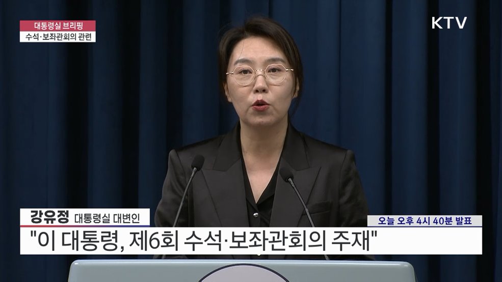 대통령실 브리핑 - 수석·보좌관회의 관련강유정 / 대통령실 대변인 (오늘 오후 4시 40분 발표)(장소: 대통령실 브리핑룸)