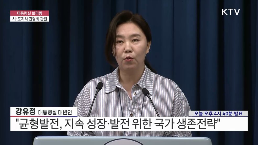대통령실 브리핑 - 시·도지사 간담회 관련강유정 / 대통령실 대변인 (오늘 오후 4시 40분 발표)(장소: 대통령실 브리핑룸)