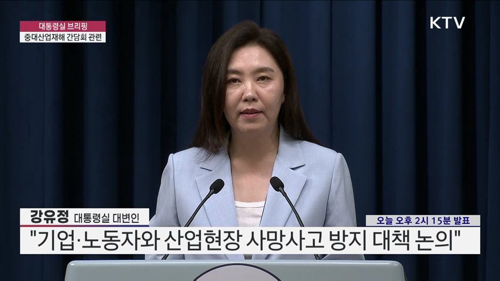 대통령실 브리핑 - 중대산업재해 간담회 관련강유정 / 대통령실 대변인 (오늘 오후 2시 15분 발표)(장소: 대통령실 브리핑룸)