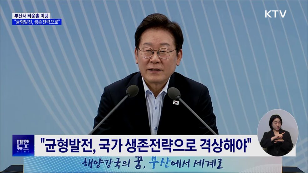 김경호 앵커>이재명 대통령이 부산 시민들과 공개 토론 형식의 주민 간담회를 열었습니다.이 대통령은 국가 생존 전략으로서 균형 발전의 중요성을 강조하며 해수부의 조속한 이전을 추진하겠다고 밝혔습니다.이혜진 기자입니다.이혜진 기자>해양강국의 꿈, 부산에서 세계로.이재명 대통령과 함께 하는 세 번째 타운홀 미팅(공개회의)이 부산에서 열렸습니다.전국 집중호우로 한...