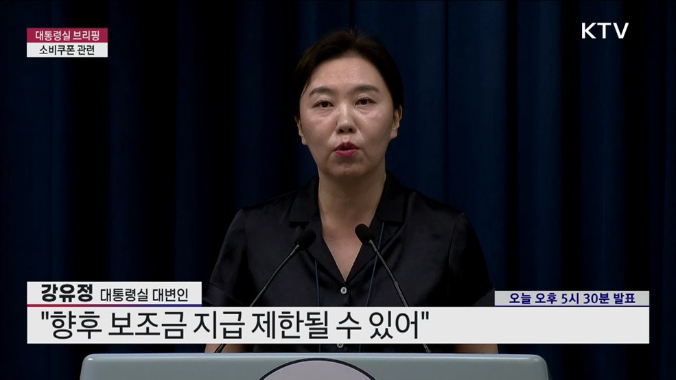 대통령실 브리핑 - 소비쿠폰 관련강유정 / 대통령실 대변인 (오늘 오후 5시 30분 발표)(장소: 대통령실 브리핑룸)