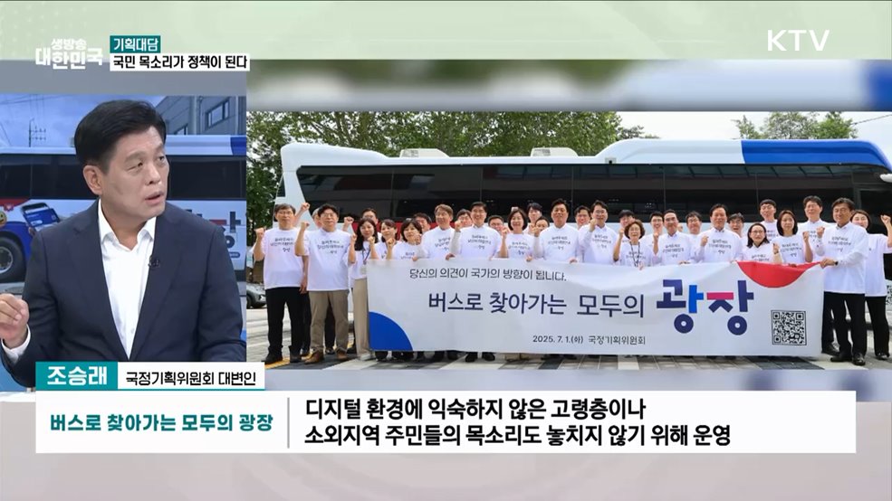 차현주 앵커>새 정부 출범과 동시에 국민 참여를 통해 정부와 소통할 수 있도록 온라인 소통 플랫폼이 운영되고 있습니다.바로 '모두의 광장'인데요.모든 국민이 자유롭게 정책을 제안하고, 제안된 의견이 실제 정책으로도 이어질 수 있어 많은 관심을 받고 있는데요.자세한 내용 국정기획위원회 조승래 대변인과 이야기 나눠보겠습니다.안녕하세요.(출연: 조승래 / 국정기...