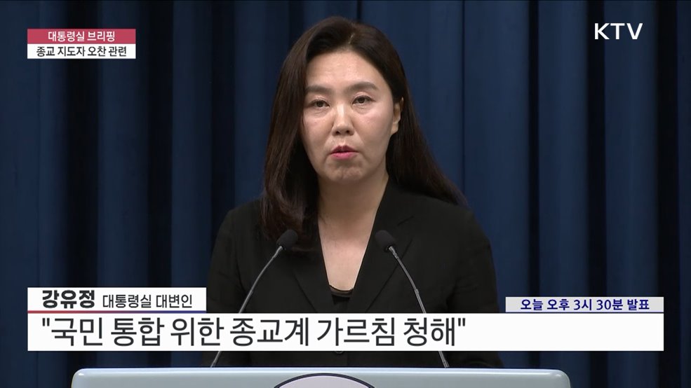 대통령실 브리핑 - 종교 지도자 오찬 관련강유정 / 대통령실 대변인 (오늘 오후 3시 30분 발표)(장소: 대통령실 브리핑룸)