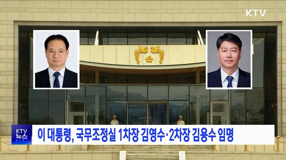 김유영 앵커>이재명 대통령이 국무조정실 1차장에 김영수 현 국무조정실 국정운영실장을, 2차장에 김용수 현 국무조정실 경제조정실장을 각각 임명했습니다.대통령실은 김영수 1차장이 빈틈없는 국정 관리와 부처 간 협업으로 정부 효능감을 극대화할 적임자라고 소개했습니다.또 김용수 2차장은 AI와 바이오, 반도체 등 첨단 전략산업 규제 완화와 육성을 통해 이재명 정부...