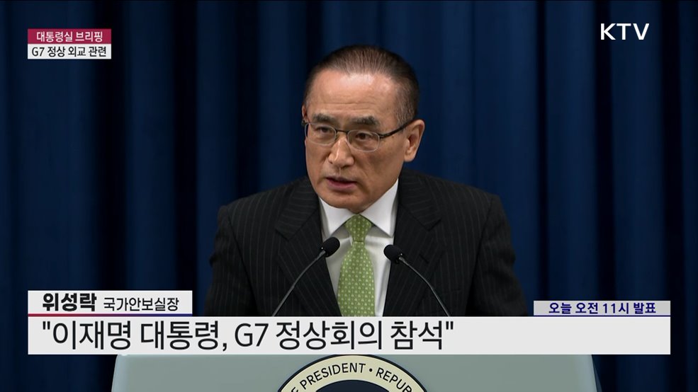 대통령실 브리핑 - G7 정상 외교 관련위성락 / 국가안보실장 (오늘 오전 11시 발표)(장소: 대통령실 브리핑룸)