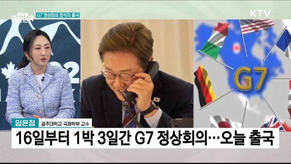 김용민 앵커>이재명 대통령이 캐나다에서 열리는 G7 정상회의 참석차 오늘 출국합니다.취임 후 다자외교 무대에 나서면서 정상외교 공백이 해소될 전망입니다.김현지 앵커>이재명 대통령은 확대 세션 연설은 물론 주요국 정상과 양자회담도 갖습니다.대통령의 첫 외교일정에 대해 임은정 공주대 국제학부 교수와 자세히 짚어보겠습니다.(출연: 임은정 / 공주대학교 국제학부 ...