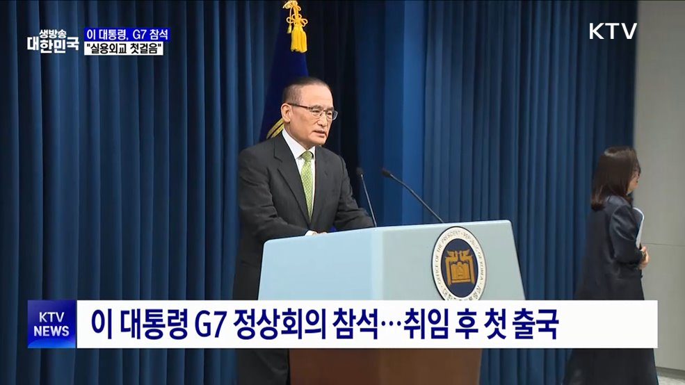 김용민 앵커>이재명 대통령이 오늘(16일)부터 18일까지 1박 3일 일정으로, 캐나다에서 열리는 G7 정상회의에 참석합니다.김현지 앵커>대통령실은 이 대통령의 G7 참석이 민주주의와 정상외교를 복원하는 출발점이자, 이재명정부 실용 외교의 첫걸음이라고 강조했습니다.먼저 최영은 기자입니다.최영은 기자>이재명 대통령이 캐나다에서 열리는 주요 7개국, G7 정상회...