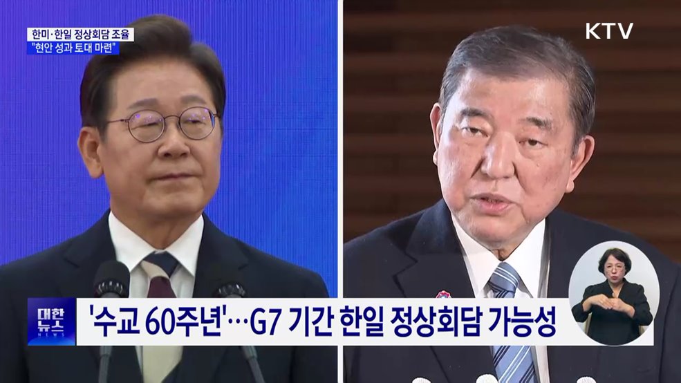 김현지 앵커>G7 정상회의 소식 이어갑니다.대통령실은 이번 G7 정상회의 기간 한미·한일 정상회담 일정을 조율하고 있다고 밝혔습니다.회담 성사 시, 당면한 외교 문제와 통상 현안이 테이블에 오를 전망입니다.조태영 기자입니다.조태영 기자>대통령실은 이재명 대통령이 G7 정상회의 참석을 계기로 도널드 트럼프 미국 대통령, 이시바 시게루 일본 총리와의 양자회담을...