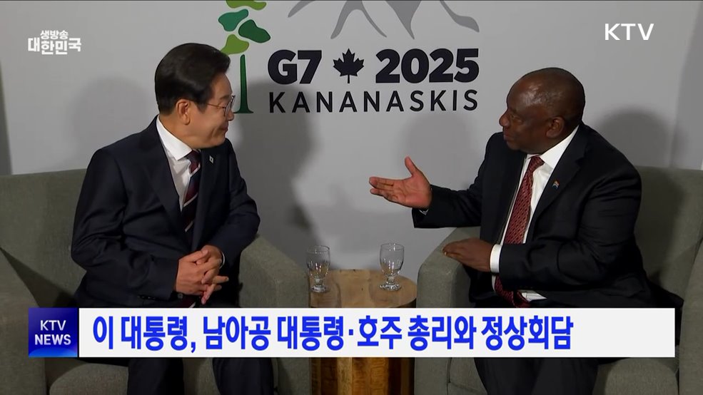 김용민 앵커>주요 7개국(G7) 정상회의 참석차 캐나다를 방문 중인 이재명 대통령은 시릴 라마포사 남아프리카공화국 대통령과 만나 정상회담을 했습니다.이 대통령은 이 자리에서 라마포사 남아공 대통령에게 양국이 교역과 투자, 에너지 분야에서 실질 협력을 증진시킬 수 있게 긴밀히 협조하자고 제안했습니다.이 대통령은 이어 앤서니 앨버니지 호주 총리와도 만나 한반도...