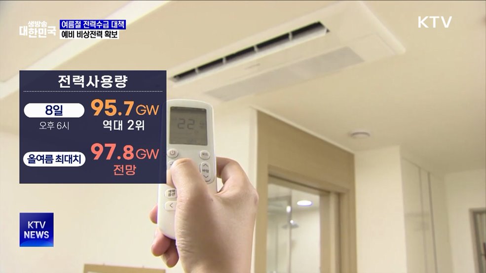 김용민 앵커>7월 초 폭염이 지속되면서 전력 사용량이 치솟았습니다.김현지 앵커>정부는 안정적인 전력 공급을 목표로 대책을 가동하고 있는데요.예비력이 충분하다고 설명했습니다.조태영 기자입니다.조태영 기자>지난 8일, 서울 최고기온이 37.8도까지 올랐습니다.작년 여름 최고였던 8월 중순 기록을 이미 넘어섰습니다.급격한 더위에 냉방기기 사용이 늘면서 전력수요도...