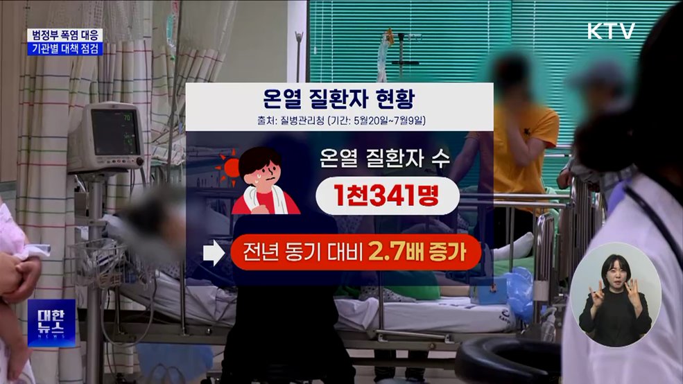 김경호 앵커>최근 폭염의 기세가 심상치 않습니다.온열질환자가 속출하고 가축 폐사도 잇따르고 있는데요.연일 계속되는 무더위에 정부가 기관별 폭염대책을 점검했습니다.윤현석 기자입니다.윤현석 기자>계속된 폭염에 전국적으로 온열 질환자가 속출하고 있습니다.질병관리청에 따르면 올해 5월 20일부터 지난 9일까지 발생한 온열 질환자는 1천341명.지난해 같은 기간보다...