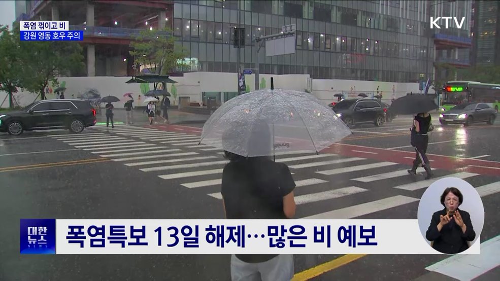 모지안 앵커>폭염의 기세는 한풀 꺾였지만 이번엔 폭우가 걱정입니다.강원 영동 지역에 시간당 30~50mm의 비가 내리면서, 내일(15일)까지 최대 120mm의 강한 비가 쏟아질 것으로 예상되는데요.날씨 전망과 집중호우 시 안전 대책 전해드립니다.김유리 기자입니다.김유리 기자>밤낮없이 뜨거운 열기를 내뿜던 폭염의 기세는 한 풀 꺾였습니다.하지만 이번 주에는 ...
