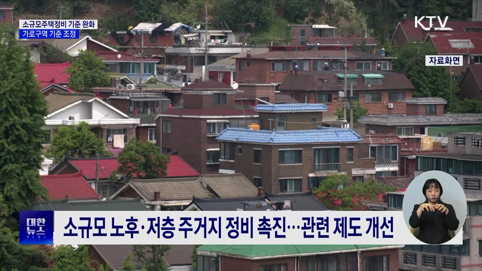 모지안 앵커>정부가 소규모 노후 주거지 정비를 활성화하기 위해 관련 제도를 개선하기로 했습니다.가로구역 등 소규모정비사업 기준이 완화되면서, 노후 주택 정비가 한층 수월해질 전망입니다.김유리 기자가 보도합니다.김유리 기자>좁은 골목 사이, 곳곳에 오래된 집들이 남아 있습니다.이처럼 대규모 재개발이 쉽지 않은 곳에 활기를 불어넣을 방안이 추진됩니다.정부가 소...