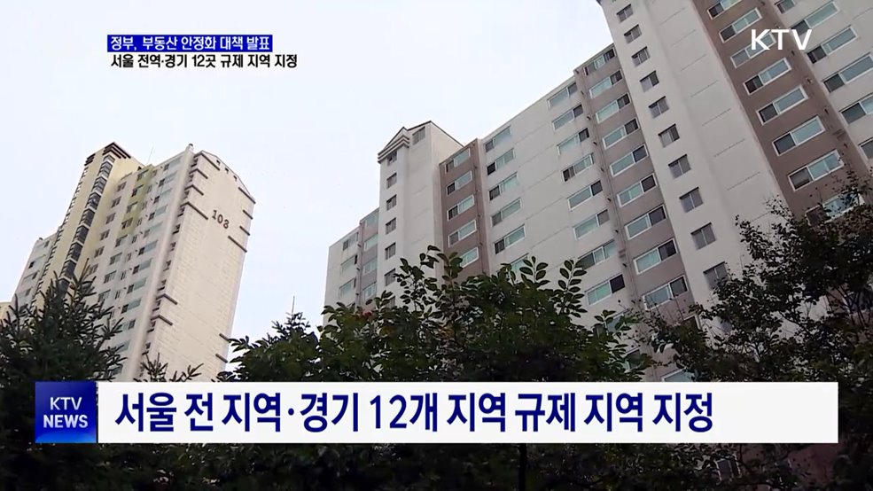 임보라 앵커>최근 서울과 수도권을 중심으로 집값 과열 양상이 이어지면서 정부가 주택시장 안정화 대책을 내놨습니다.서울 전역과 경기도 12곳을 규제지역과 토지거래 허가구역으로 지정하고 대출규제도 보완했습니다.신국진 기자가 보도합니다.신국진 기자>정부가 부동산 시장의 과열 조짐을 억제하고, 국민 주거안정 실현을 위한 주택시장 안정화 대책을 발표했습니다.이번 대...