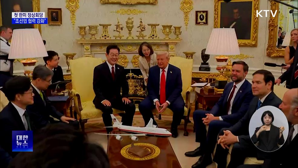 김경호 앵커>이재명 대통령과 트럼프 대통령은 첫 정상회담에서 조선업을 중심으로 경제 협력을 강화하자고 뜻을 모았습니다.회담에서 우려했던 농축산물 추가 개방 요구는 없었습니다.미국 워싱턴에서 최영은 기자입니다.최영은 기자>(장소: 백악관 (미국 워싱턴))백악관에 도착한 이재명 대통령과 마중 나온 트럼프 대통령이 환하게 웃으며 악수를 나눕니다.나란히 앉은 두 ...