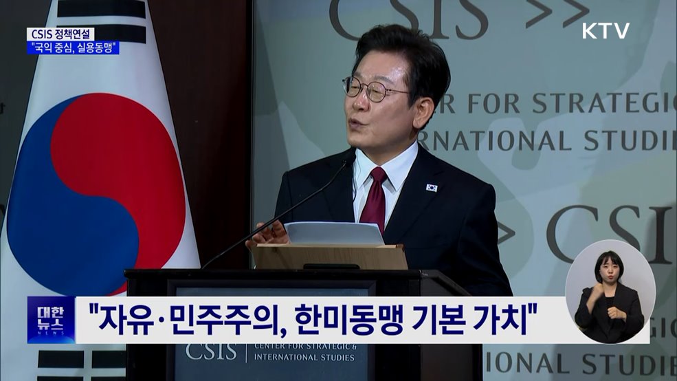 김경호 앵커>회담에 이어 이재명 대통령은 미국의 외교안보 싱크탱크를 찾아 정책 연설도 했습니다.이 대통령은 한미동맹을 바탕으로 국익중심 실용외교의 새 지평을 열겠다고 다짐을 밝혔습니다.최유경 기자입니다.최유경 기자>CSIS 정책연설(장소: 현지시간 25일, 미 워싱턴 D.C. CSIS)미국 워싱턴 D.C.의 유력 외교안보 싱크탱크 전략국제문제연구소, CSI...
