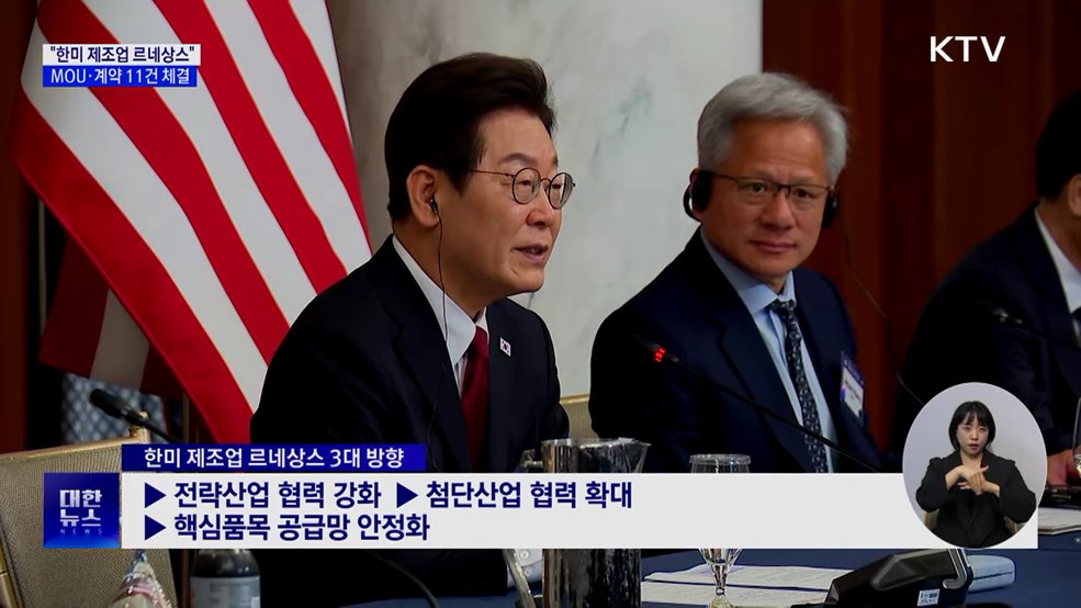 김경호 앵커>이번 정상회담을 계기로 양국 기업들도 조선과 원전 등 주요 산업에서 협력을 약속했습니다.기업인과 함께한 이재명 대통령도 한국이 미국 제조업의 르네상스를 위한 최적의 파트너임을 강조했습니다.문기혁 기자입니다.문기혁 기자>한미 비즈니스 라운드테이블(장소: 25일(현지시간), 미국 워싱턴D.C.)한국과 미국 굴지의 기업인들이 한 자리에 모였습니다.이...