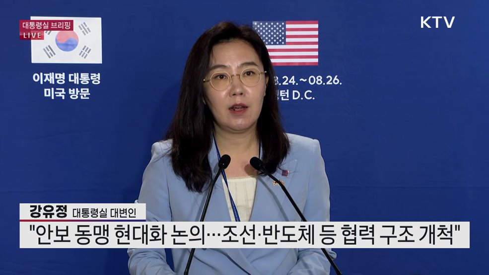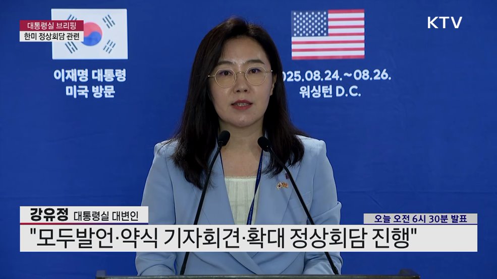 대통령실 브리핑 - 한미 정상회담 관련강유정 / 대통령실 대변인 (오늘 오전 6시 30분 발표)(장소: 워싱턴 D.C. 프레스센터)
