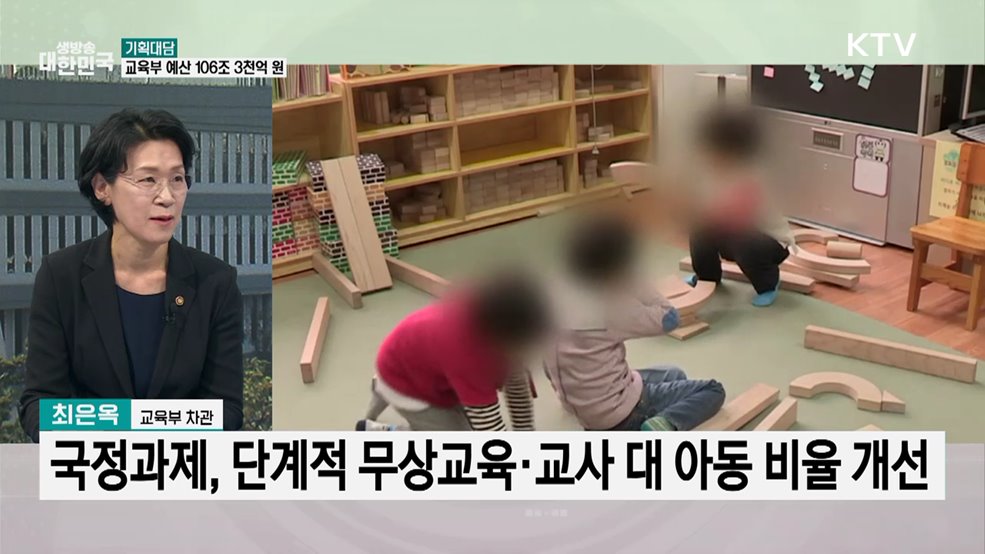 김용민 앵커>2026년도 교육부 예산안이 발표 됐습니다.총 규모는 106조 3천억원으로 작년보다 약 3.6조원 증가했는데요.이번 예산안에는 지역 교육 혁신과 인재 양성을 위한 투자 분야가 대폭 확대됐습니다.김현지 앵커>이번 예산이 구체적으로 어떻게 쓰일지, 또 교육 현장에 어떤 변화를 불러오게 될지 교육부 최은옥 차관과 함께 자세히 이야기 나눠보겠습니다.(...