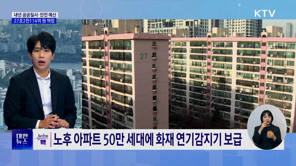 김경호 앵커>취재기자와 내년 정부 예산안 조금 더 살펴보겠습니다.조태영 기자, 확장 재정 방침에 따라 내년 안전 분야 예산도 늘었죠?조태영 기자>네, 그렇습니다.공공질서·안전 분야 책정 예산은 27조2천114억 원으로 올해보다 8.8% 늘었습니다.우선 재해위험지역 정비에 5조5천억 원 투입합니다.재난 예측 목표로 기상모델을 개발하고, 홍수예보를 위한 수위관...