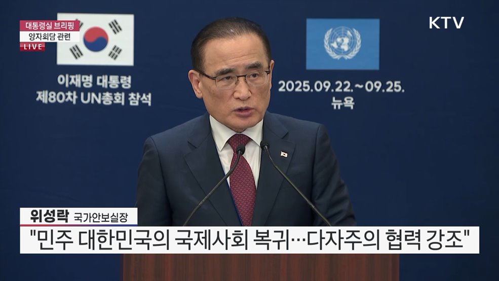 대통령실 브리핑 - 양자회담 관련위성락 / 국가안보실장(장소: 뉴욕 프레스센터)