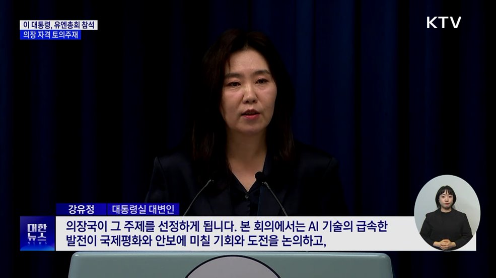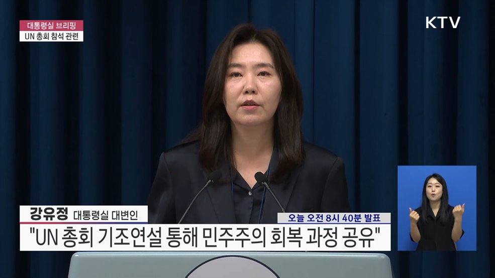 대통령실 브리핑 - UN 총회 참석 관련강유정 / 대통령실 대변인 (오늘 오전 8시 40분 발표)(장소: 대통령실 브리핑룸)