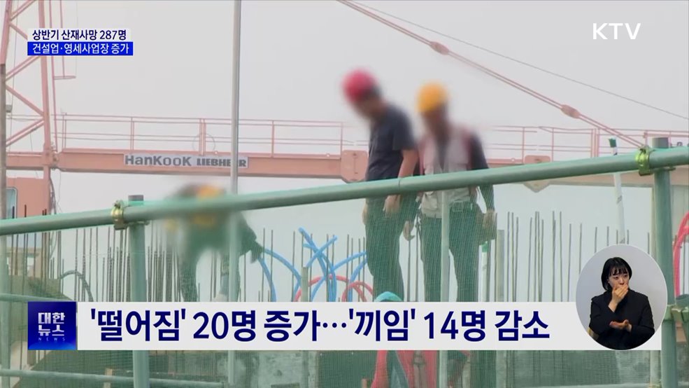 모지안 앵커>올해 상반기 산업재해로 인해 발생한 사망자 수가 287명으로 조사됐습니다.올해 초 연이은 대형사고의 영향으로 건설업 산재 사망자가 늘었고, 영세사업장에도 피해가 집중됐습니다.임보라 기자입니다.임보라 기자>(부산 기장군 건설현장 화재)지난 2월 14일, 6명의 사망자를 낸 부산 기장군의 반얀트리 리조트 건설 현장 화재.(세종-안성 고속도로 교량 ...