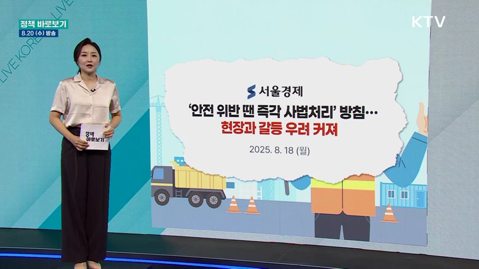 김유영 앵커>언론 속 정책에 대한 오해부터 생활 속 궁금한 정책까지 짚어보는 정책 바로보기입니다.고용노동부가 노동안전대책에 시정조치 없는 '사법처리'를 예고했다는 지적이 나왔습니다.사실 확인해보고요.8월, 폭염만큼 무서운 재난으로 '벌 쏘임 경보'가 내려졌습니다.이 내용, 살펴봅니다.1. 고용부 "안전조치 의무 위반 시 제재 강화···산재 예방 효과"최근 ...