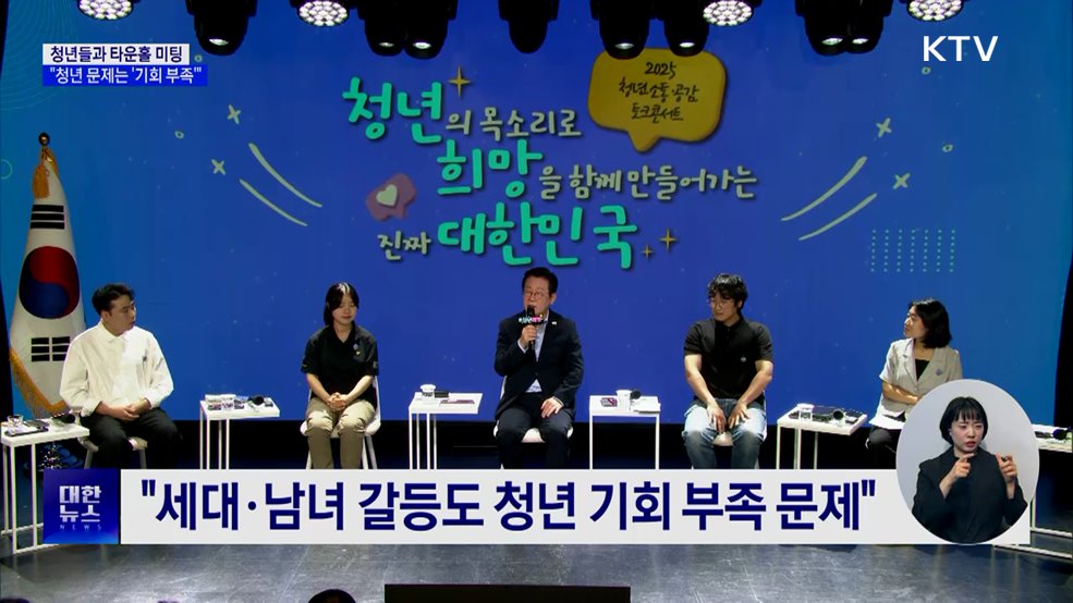 김경호 앵커>이재명 대통령이 청년 갈등의 근본 원인이 저성장으로 인한 기회 부족에서 비롯됐다고 진단했습니다.청년을 위해 기회를 만드는 일이 새 정부가 가야할 방향이라고 강조했습니다.최영은 기자입니다.최영은 기자>2030 청년 소통·공감 토크콘서트(장소: 19일, 서울 마포구)이재명 대통령이 2030 청년들과 마주앉았습니다.취업과 주거, 결혼 등 청년들이 가...