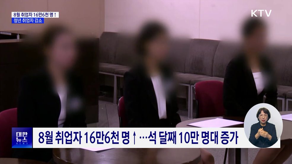 모지안 앵커>지난달 취업자가 1년 전보다 16만여 명 늘었습니다.하지만 청년 취업자는 20만 명 넘게 감소했고, 제조업과 건설업의 고용부진도 이어졌습니다.신경은 기자입니다.신경은 기자>통계청의 '8월 고용동향'에 따르면, 지난달 취업자는 2천 896만 7천 명으로 집계됐습니다.지난해 같은 달보다 16만 6천 명 늘어난 것으로, 석 달 째 10만 명대 증가입...