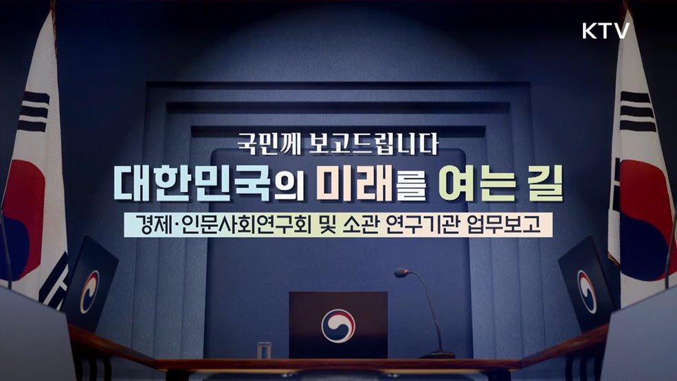 대한민국의 미래를 여는 길 경제·인문사회연구회·소관 연구기관 업무보고(장소: 한국행정연구원 대강당)*김민석 국무총리 모두 발언<경제·인문사회연구회·소관 연구기관 업무보고 및 정책토론>이한주 / 경제·인문사회연구회 이사장박찬수 / 과학기술정책연구원 부원장김명수 / 국토연구원 연구부원장이시욱 / 대외경제정책연구원 원장김천곤 / 산업연구원 연구부원장김현제 / 에...