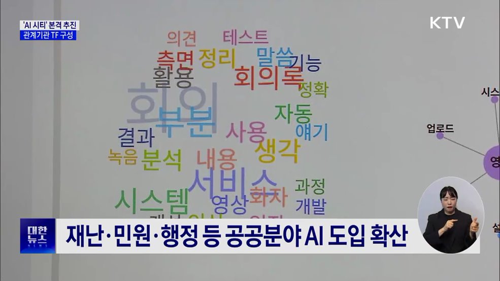 모지안 앵커>정부가 주요 국정과제 중 하나로 선정된 AI 시티 조성을 위한 밑그림 작업에 나섰습니다.특정 지역을 국가 시범 AI 시티로 지정하고, AI 기술을 도시 행정과 각종 서비스에 실증한다는 계획인데요.보도에 이리나 기자입니다.이리나 기자>공공 영역에 급속도로 도입되고 있는 인공지능 서비스.재난 경보와 민원 상담뿐 아니라 행정 업무, 교통 체계 관리 ...