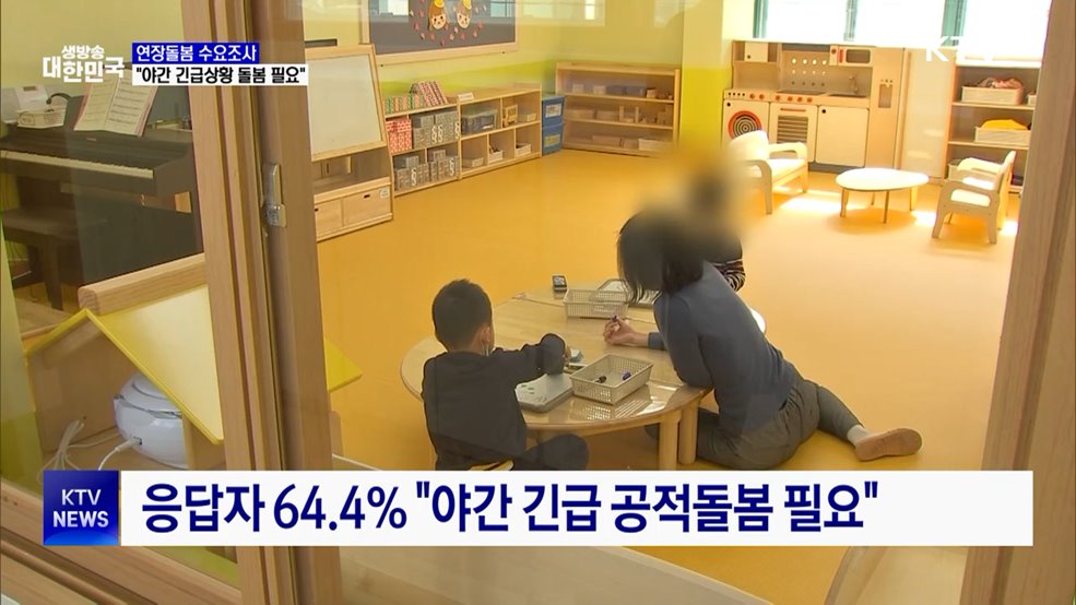 김용민 앵커>지난달 일을 하러 간 부모가 집을 비운 사이 불이 나 아이들이 목숨을 잃은 사건이 있었죠.김현지 앵커>정부가 야간시간대 돌봄 사각지대를 메우기 위해 사전 수요조사를 실시했습니다.조사 결과, 부모 64%가 야간 긴급상황에 대비한 공적 돌봄체계가 필요하다고 답했습니다.최다희 기자입니다.최다희 기자>늦은 시간 일을 하러 간 부모가 집을 비운 사이 어...