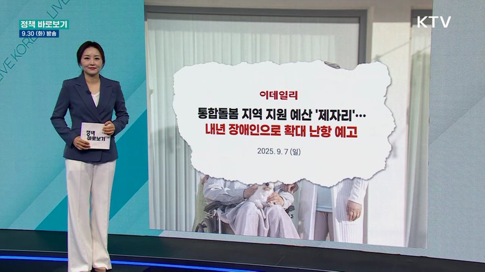 김유영 앵커>언론 속 정책에 대한 오해부터 생활 속 궁금한 정책까지 짚어보는 정책 바로보기입니다.내년 통합돌봄 예산에 장애인 돌봄은 별도 편성되지 않았다는 지적이 나왔습니다.사실 확인해보고요.추석 명절 장바구니 부담을 가볍게 해줄 농축산물 할인지원, 알아봅니다.1. 복지부 "지자체에 통합돌봄 적정 예산 지원될 수 있도록 최선"최근 언론 보도에서 "통합돌봄 ...