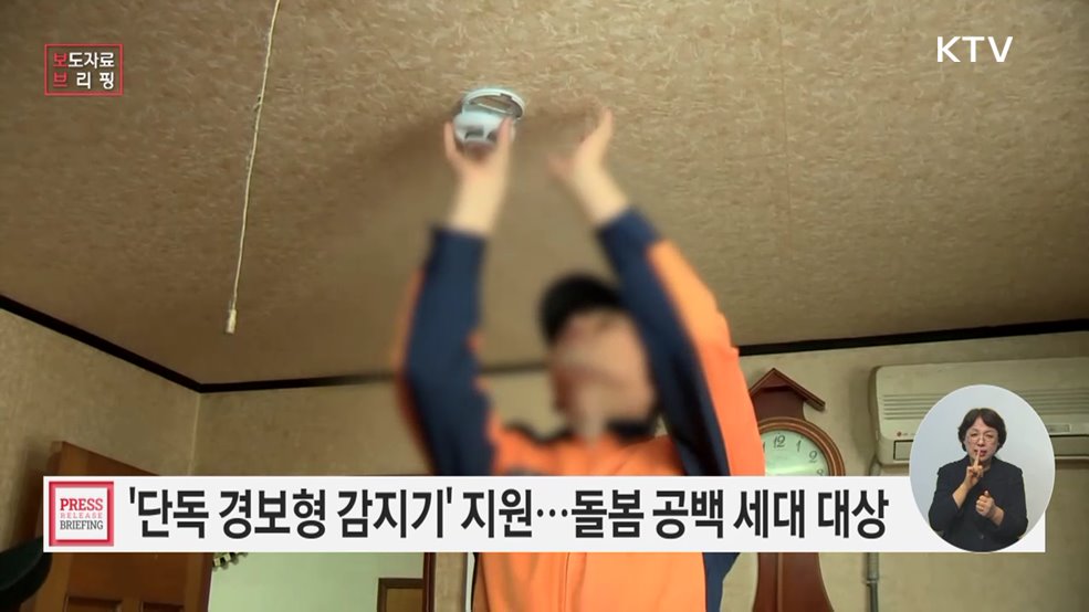 임보라 기자>국정을 더 촘촘히 살펴봅니다.보도자료 브리핑입니다.최근 부산의 아파트에서 불이 나 어린이들이 희생되는 안타까운 사고가 잇따라 발생했는데요.소방청이 이 같은 사고를 막기 위해 돌봄 공백 세대에 '단독 경보형 감지기'를 무상 지원합니다.연기를 감지해 경보음을 울리는 주택용 소방시설로, 건전지 작동 방식이라 전기공사 없이 설치할 수 있습니다.지원 대...