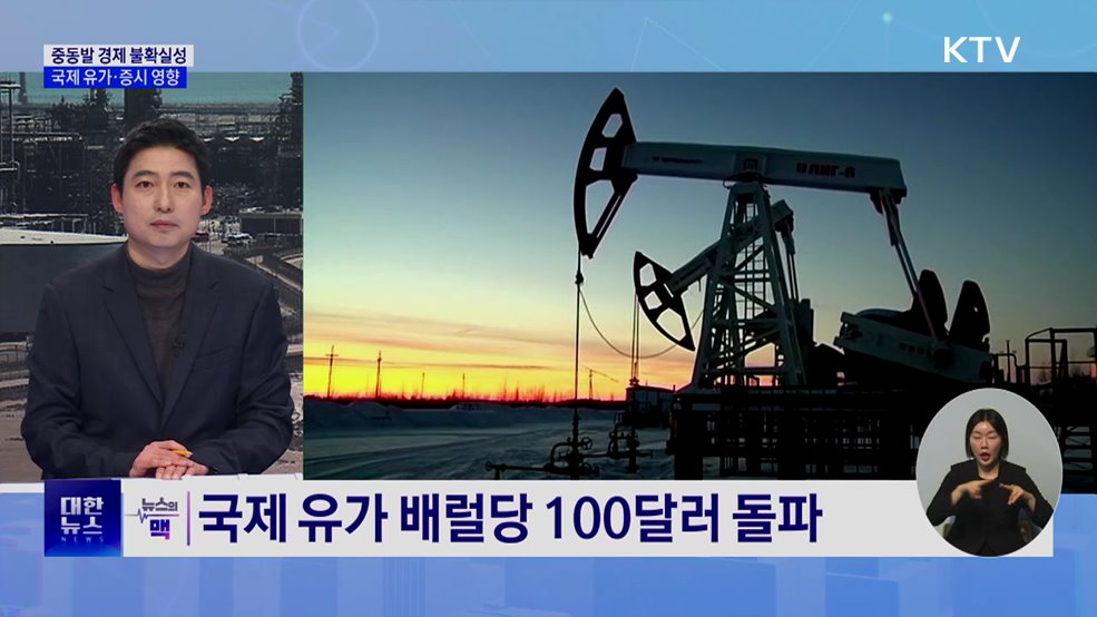 김경호 앵커>계속해서 스튜디오에 나와 있는 신국진 기자와 함께 중동 상황에 대해 이야기 나눠보겠습니다.앞서 말씀드린 것처럼 중동 상황의 영향으로 우리 증시도 크게 흔들렸습니다.신국진 기자>네, 앞선 리포트에서 보셨듯이 이재명 대통령이 직접 유가와 환율, 증시 상황을 점검했는데요.중동발 악재로 원유 가격이 배럴당 100달러 선을 돌파하면서 국내 증시도 큰 폭...