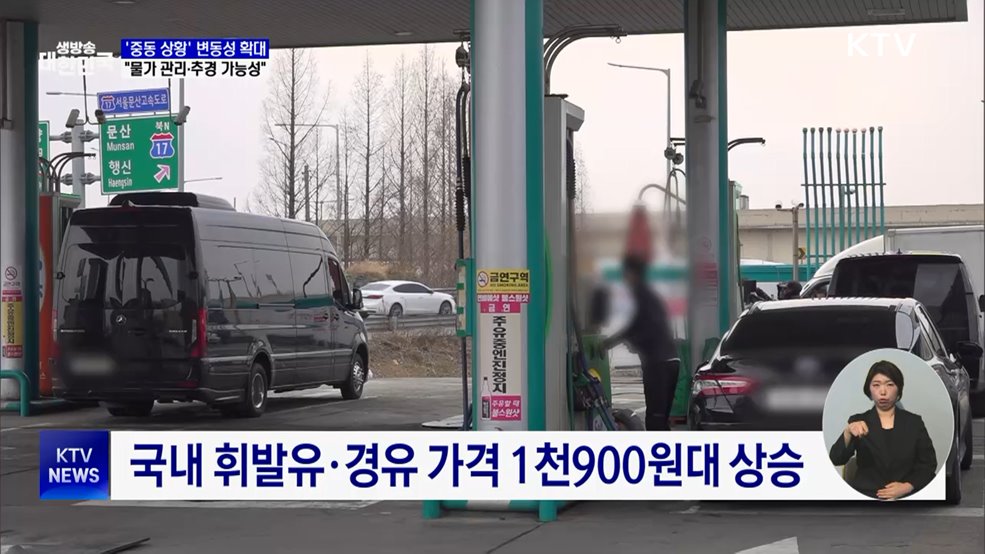 김경호 앵커>중동 상황 여파로 국제유가가 배럴당 100달러를 넘어섰습니다.국내 주유소 기름값도 가파르게 오르면서 민생물가 부담이 커지고 있는데요.정부는 주유소 특별점검을 실시하고, 에너지 대체 수입선을 확보하는 등 석유 가격 안정화 방안을 추진하기로 했습니다.조태영 기자의 보도입니다.조태영 기자>우리시간 오늘 오후 1시, 석부텍사스산원유(WTI) 가격은 전...