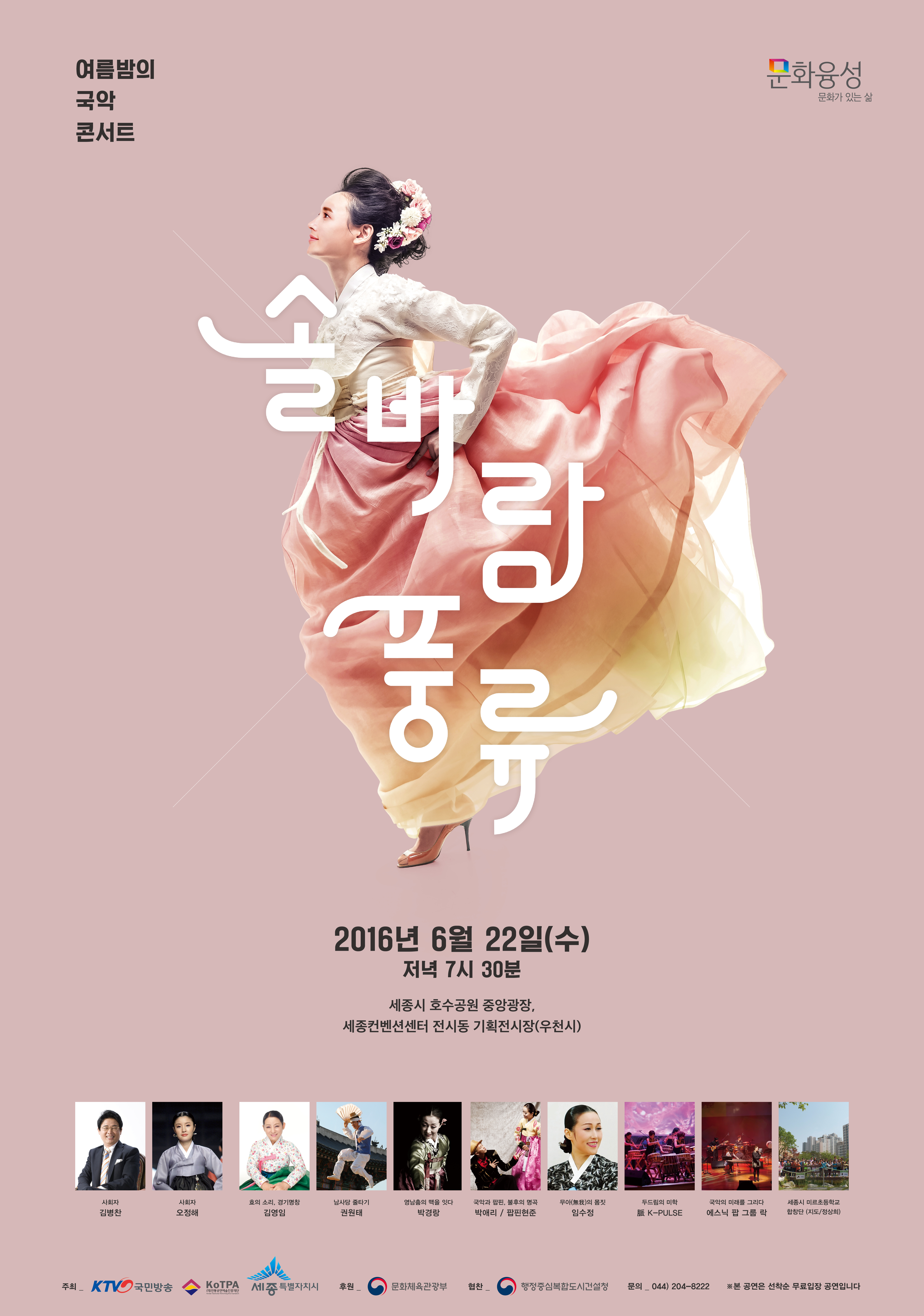 사회자 - 김병찬, 오정해 효의소리 경기명창 - 김영임 남사당 줄타기 - 권원태 영남춤의 맥을 잇다 - 박경랑 국악과 팝핀, 불후의 명곡 - 박애리, 팝핀현준 무아의 몸짓 - 임수정 두드림의 미학 - 脈 K-pulse 국악의 미래를 그리다 - 에스닉 팝 그룹 락 세종시 미르초등학교 합창단