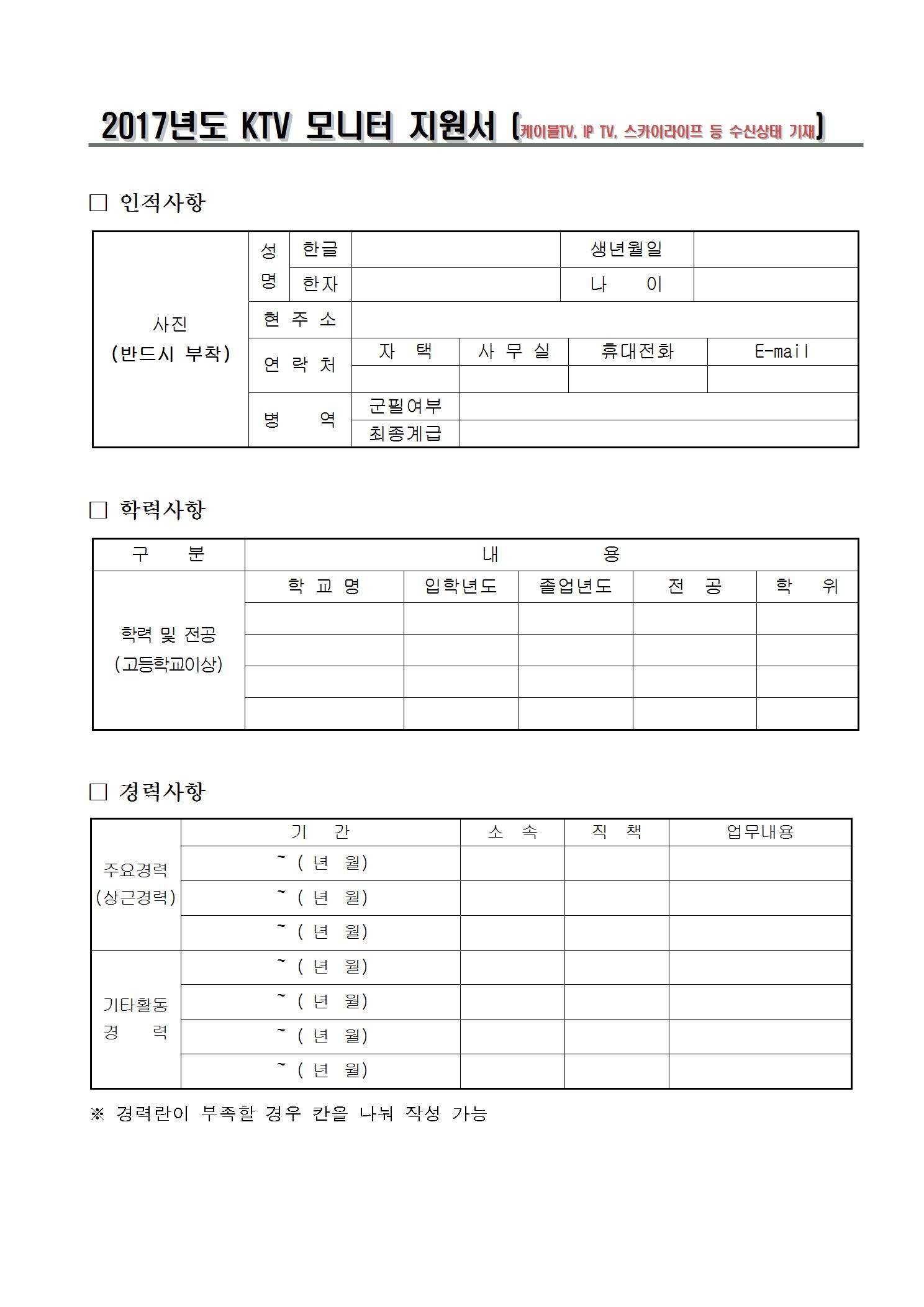 2017년도 KTV 시청자모니터 선발 공고