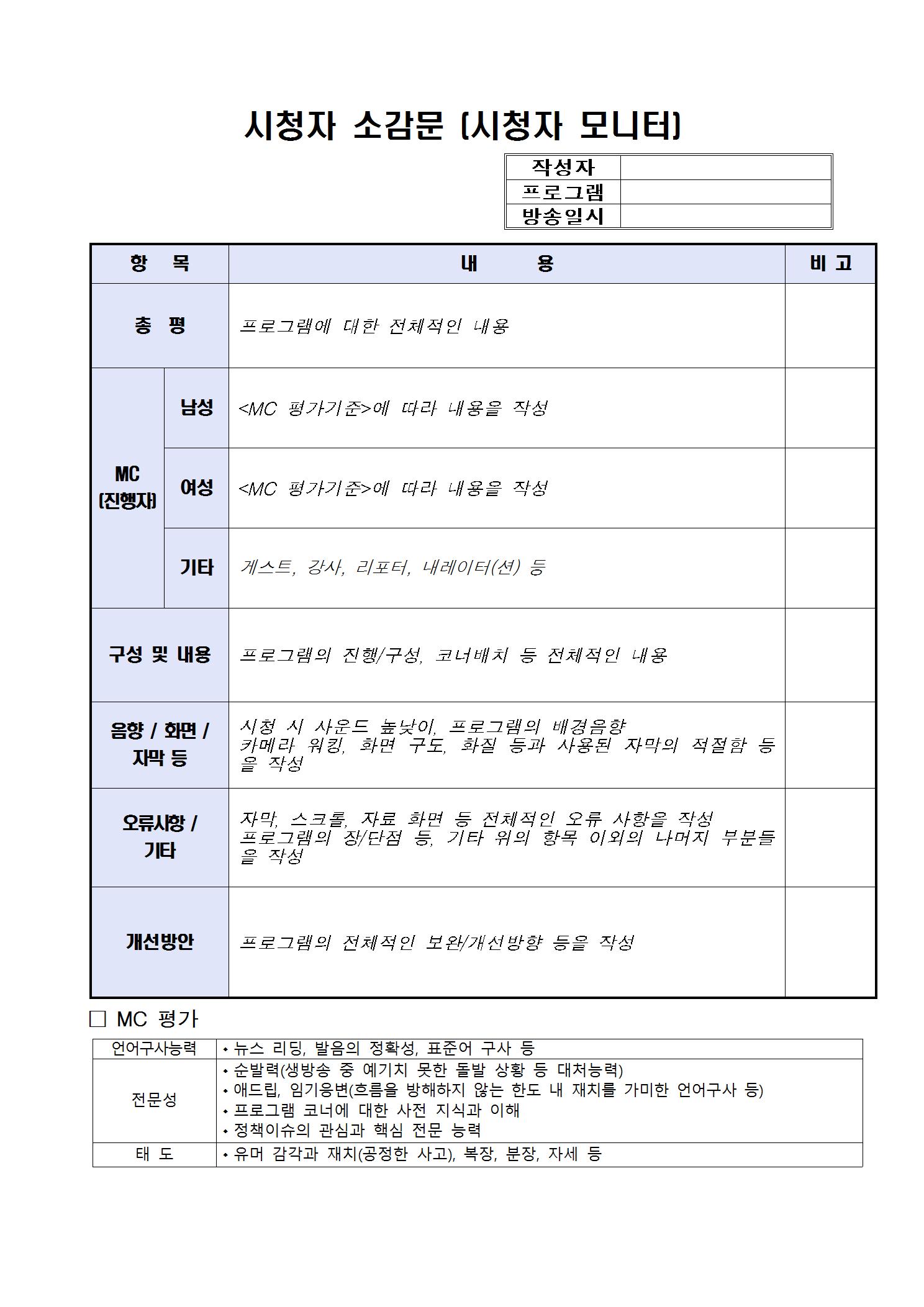 * 서류 접수 시 파일명은 “시청자모니터_이름”으로 함