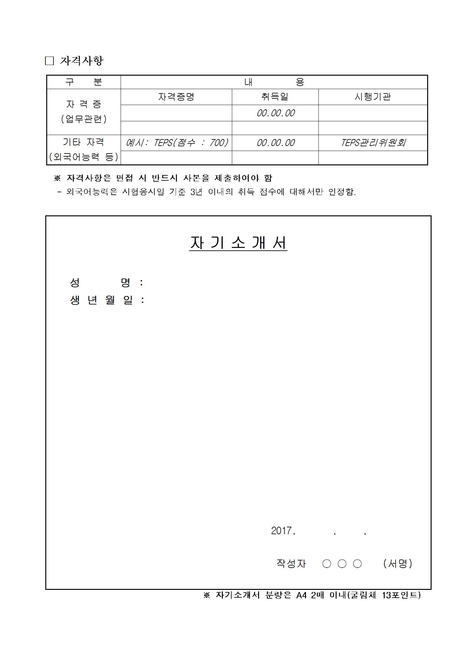 o 서류전형 합격자발표 : 2017.3.24(금) 예정 (개별통보)