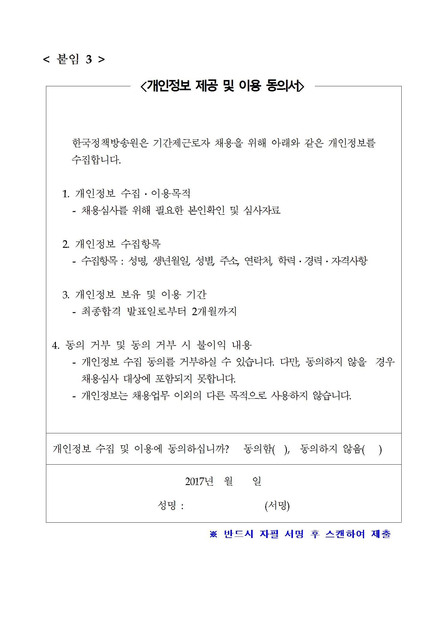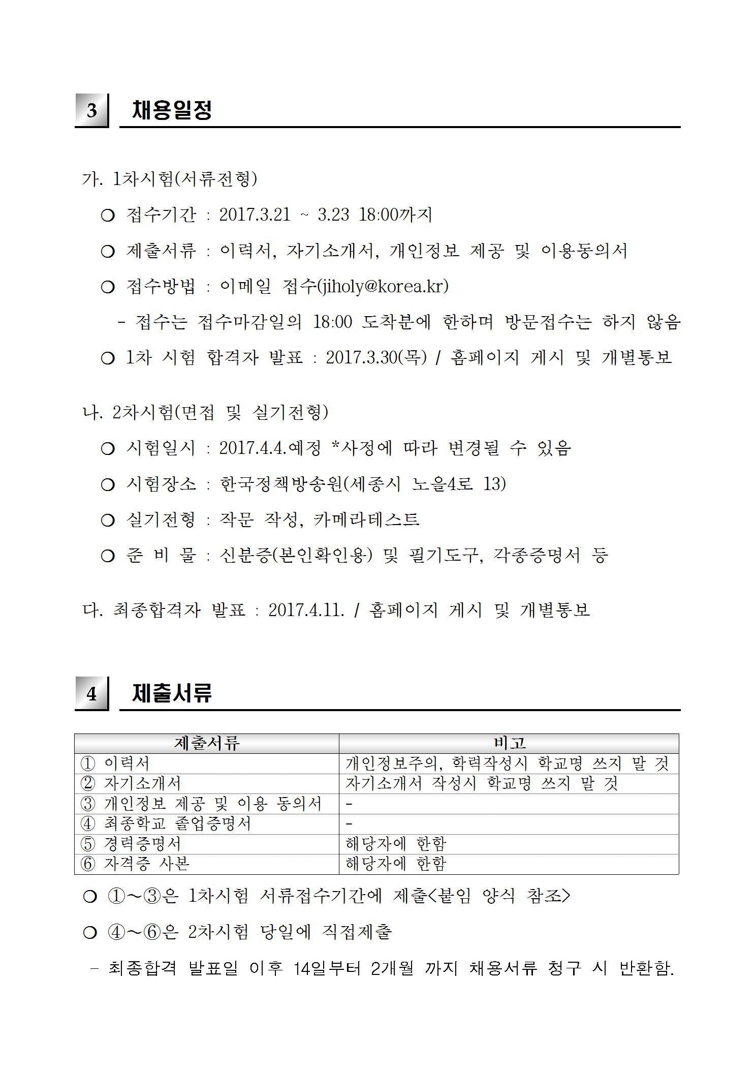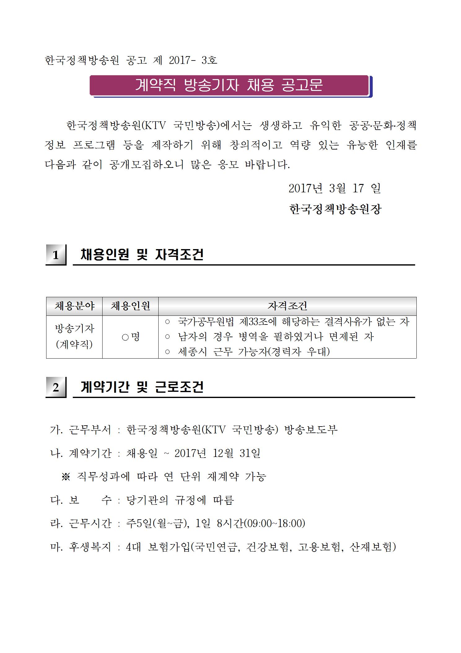 한국정책방송원 공고 제 2017- 3호