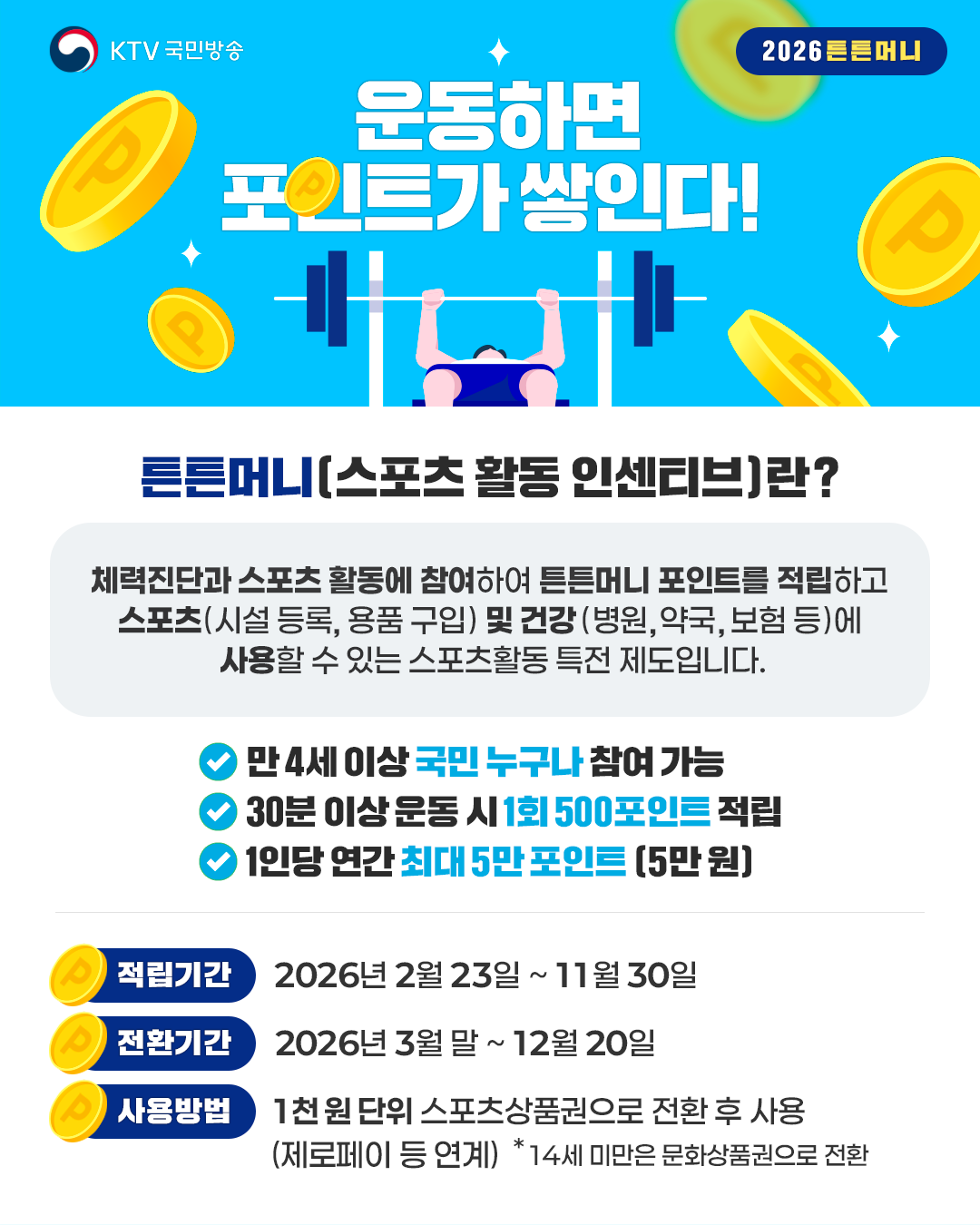 운동이 즐거운 혜택으로 돌아오는 튼튼머니!
