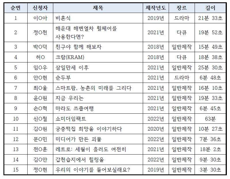 2022년 KTV편성개방 일반인 부문 제2차 선정작 심의 결과
