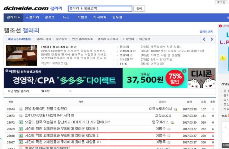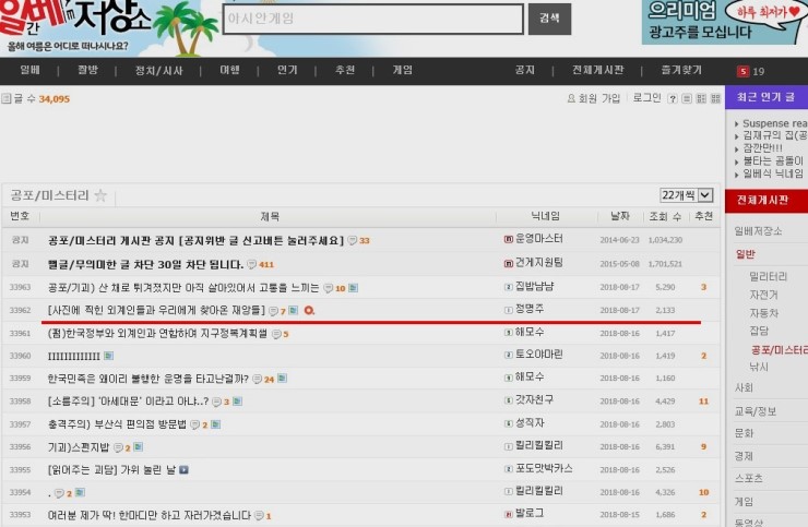 아래 예시한 게시판 외에 몇 곳을 제외하고는 많은 곳에서