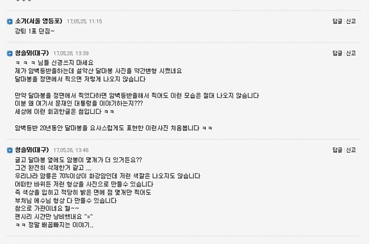 아래 사진들은 문재인 카페에 올린 글에 달린 댓글과