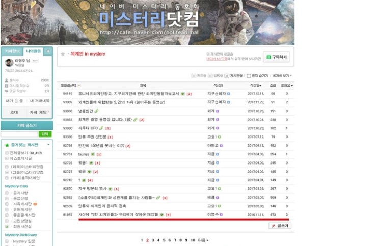 전국에 있는 사찰이나 성당 홈페이지, 외계인 관련 일반 카페, 정치인 카페 등