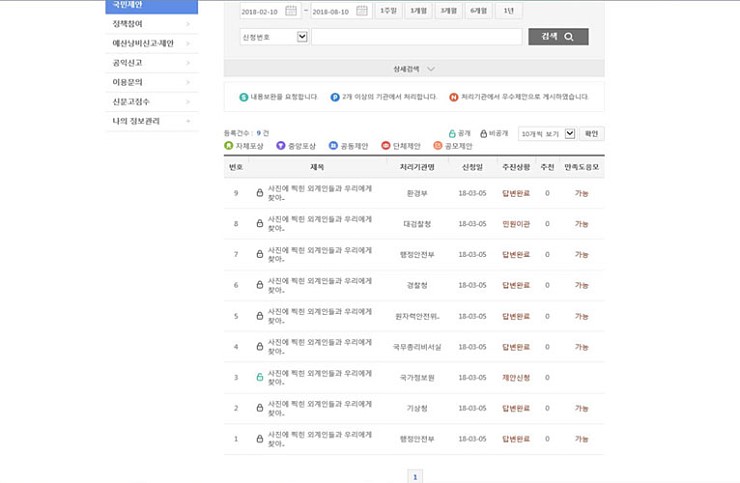 또한 국민신문고 국민제안 신청도 행정 각부에 해 보았으나